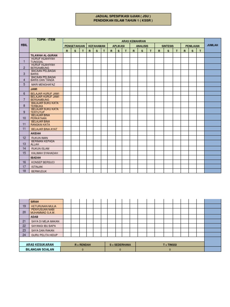 Jadual Spesifikasi Ujian Jsu Pendidikan Islam Tahun 1 Kssr Pdf