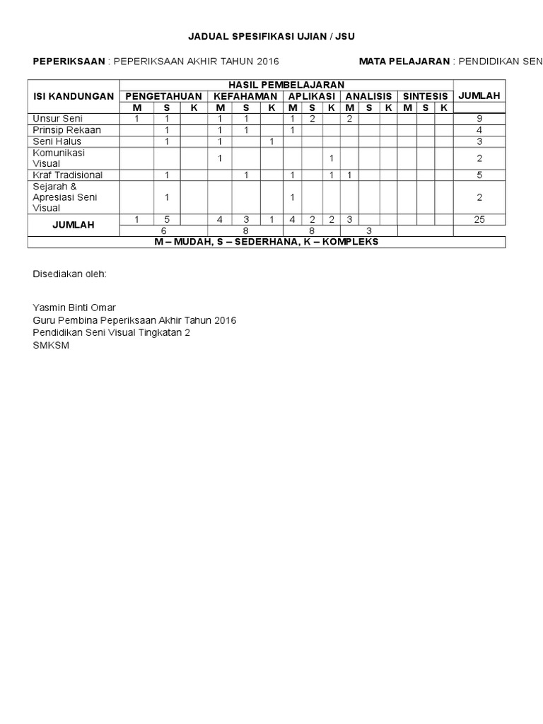 Jadual Spesifikasi Ujian Psv 2 Pdf