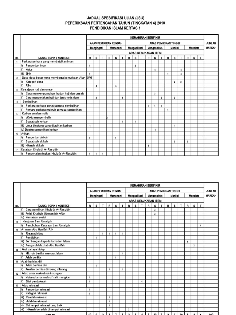 Jadual Spesifikasi Ujian Pendidikan Islam Tahun 4 Pdf